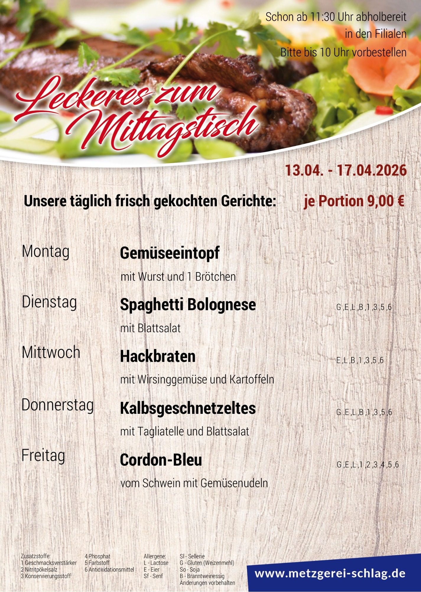 Wir bieten Ihnen einen täglich wechselnden Mittagstisch. Als Alternative bieten wir jeden Tag eine breiten Auswahl an verschiedenen Gerichten in unserer Warmtheke an.